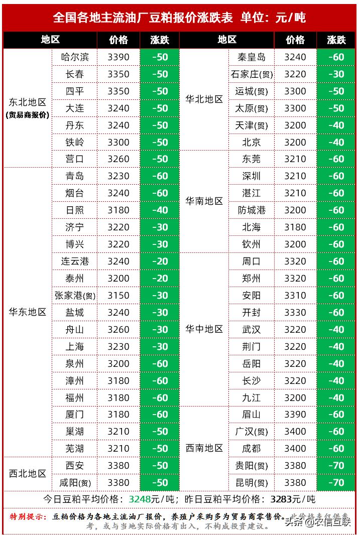 經(jīng)過近期的市場調(diào)整,今日豆粕價(jià)格呈現(xiàn)出以下特點(diǎn):