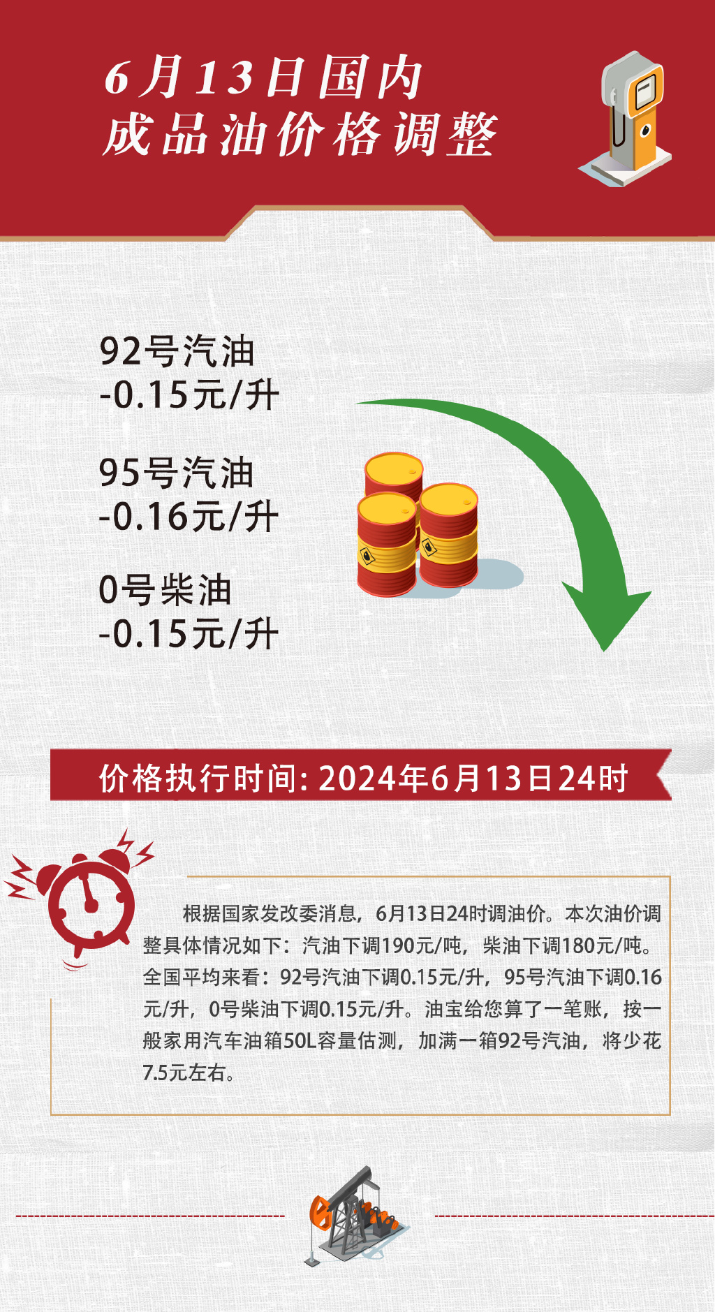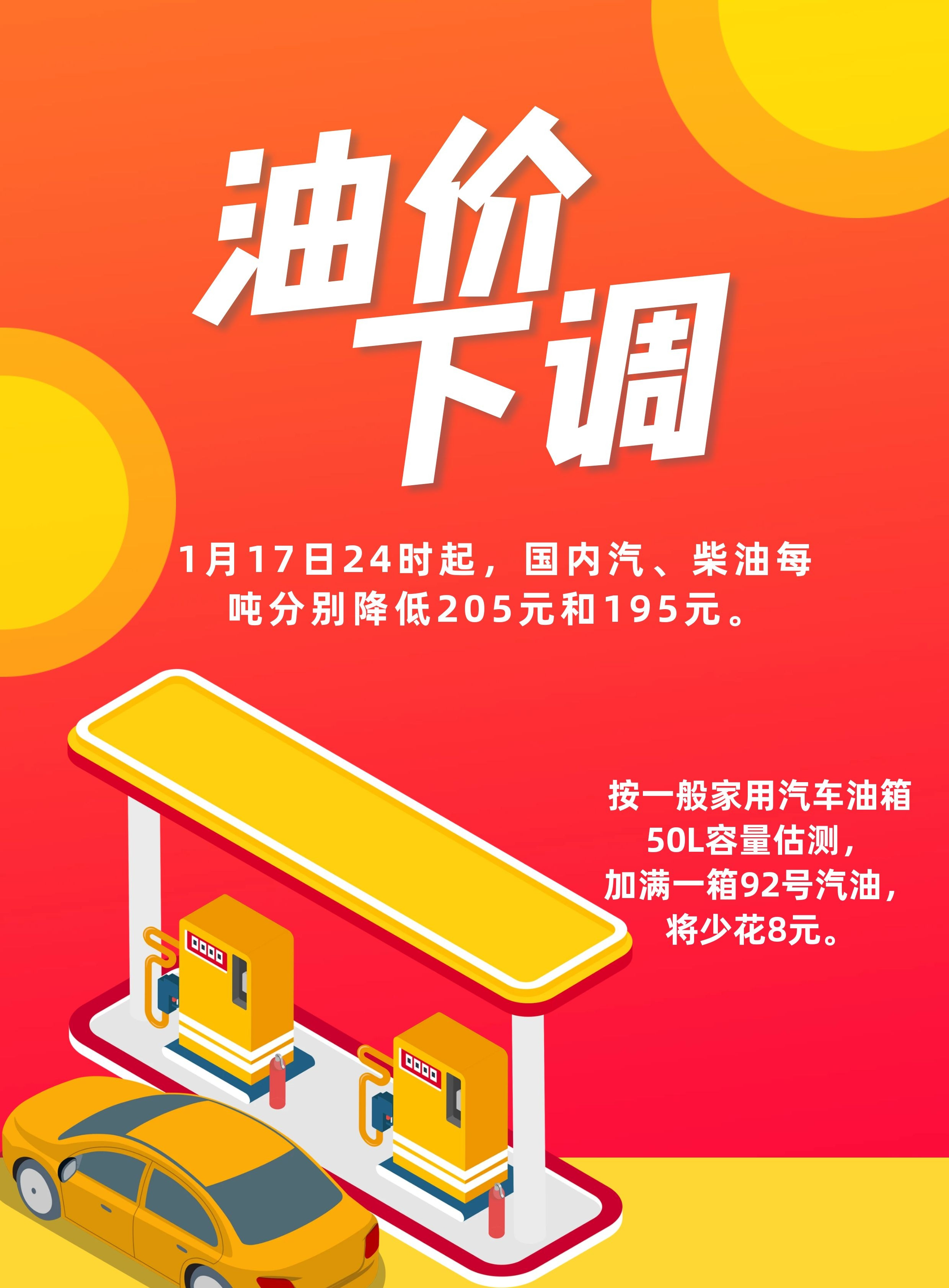 ??油價下調(diào),喜大普奔!??讓我們關(guān)注一下這次油價下調(diào)的具體情況,受國際油價走勢波動的影響,好消息頻頻傳來,終于,我們迎來了久違的油價下調(diào)!對廣大車主來說,這無疑是巨大的福音,再也不用擔心油價高漲,錢包壓力倍增啦!