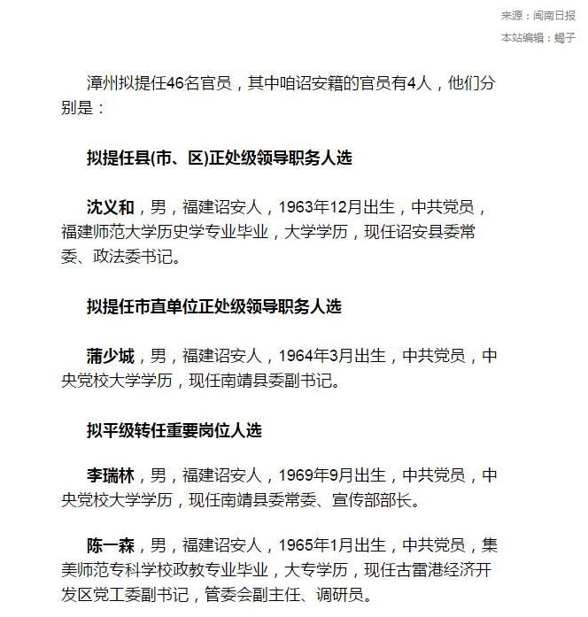 詔安官員任免公告,最新官員任免情況匯總