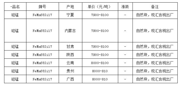 轉(zhuǎn)載請(qǐng)注明來(lái)自福建省鑫越群貿(mào)易有限公司,本文標(biāo)題:《硅錳最新價(jià)格,硅錳最新價(jià)格,市場(chǎng)走勢(shì)、影響因素及行業(yè)洞察》