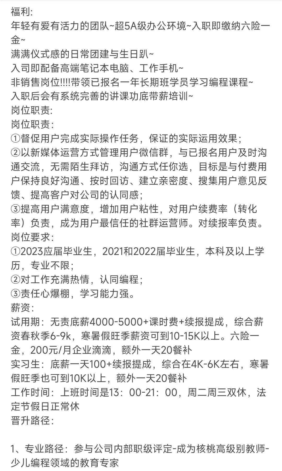 房山海博思創(chuàng)非常重視員工的個(gè)人成長和職業(yè)發(fā)展,我們?yōu)閱T工制定了一系列的培訓(xùn)計(jì)劃,幫助員工提升技能,實(shí)現(xiàn)職業(yè)晉升,您將有機(jī)會接觸到最前沿的技術(shù),參與到激動人心的項(xiàng)目中,與優(yōu)秀的團(tuán)隊(duì)共事,共同攻克難題,實(shí)現(xiàn)個(gè)人價(jià)值的最大化。